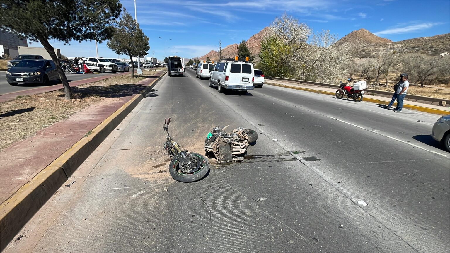 H. Cd. de Chihuahua.- Un accidente múltiple ocurrido la mañana de este domingo en el Libramiento Bicentenario paralizó la circulación en ambos sentidos a