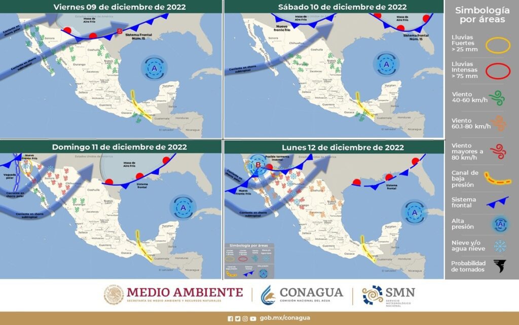 Para la noche de lunes y madrugada del martes 13 se esperan lluvias, caída de nieve y aguanieve, particularmente sobre municipios fronterizos y serranos.