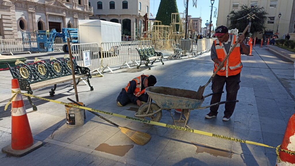 Además, se repararon 66 piezas de adoquín, se resanaron 52 metros cuadrados de mármol y se repararon 4 registros de concreto.