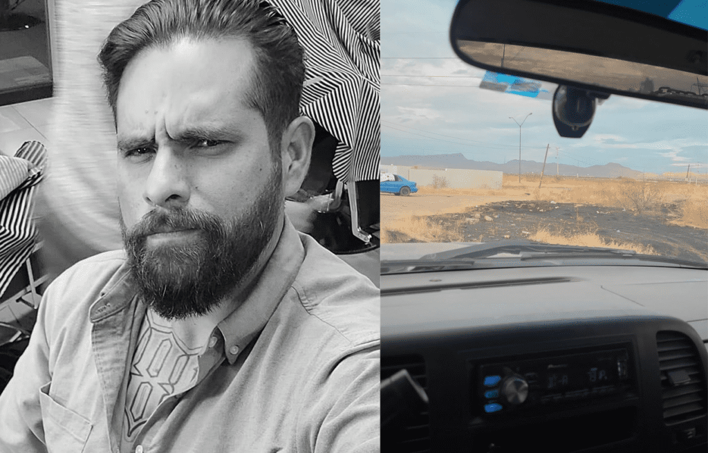 Horas antes del hallazgo del cuerpo del electricista, Enrique Ramírez Jasso, en su perfil personal de la red social, fue compartida una imagen en la que se observa de fondo un terreno y automóvil color azul.