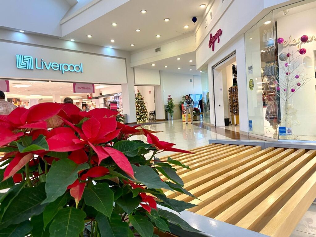 En las plazas comerciales el color rojo, las nochebuenas, la escarcha y las luces son el común denominador.