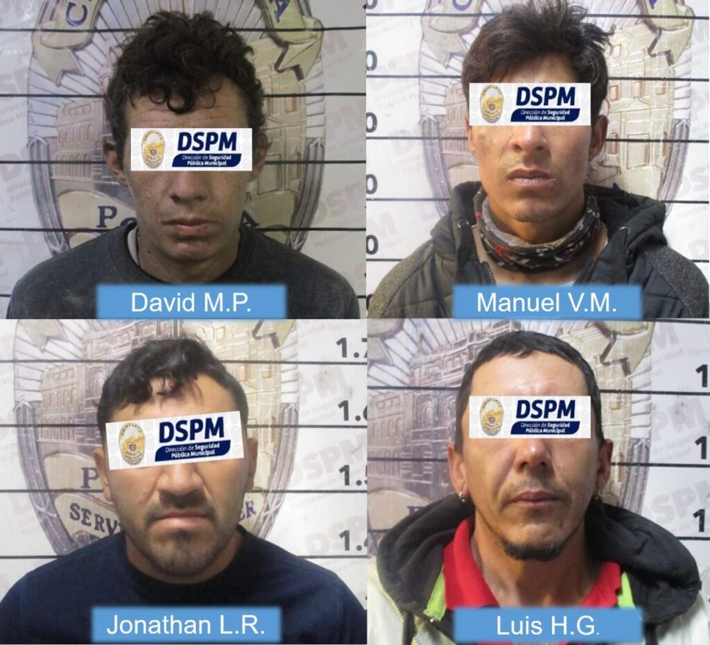 Elementos de la Policía Municipal lograron asegurar a cuatro hombres, acusados de robar en hechos distintos, por lo que fueron remitidos a la comandancia correspondiente para su registro y posteriormente puestos a disposición de la Fiscalía General del Estado para determinar su situación legal.