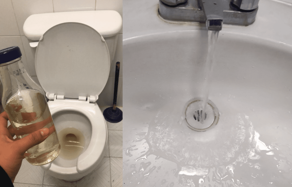 Al momento de jalar la palanca para el desagüe de los inodoros, se puede observar el líquido con un tono desagradable a la vista.