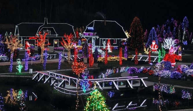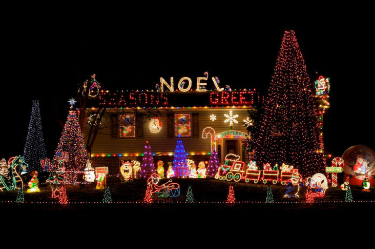 Es una casa de Navidad totalmente estadounidense, con todas las referencias típicas. Y es que el sistema de luces hace alusión al Polo Norte, en la Casa de Noel, con tren, letrero de bienvenida y hasta Papá Noel subiendo el árbol. Los Fiedler, de Maryland, demuestran que Estados Unidos siempre está a la vanguardia.