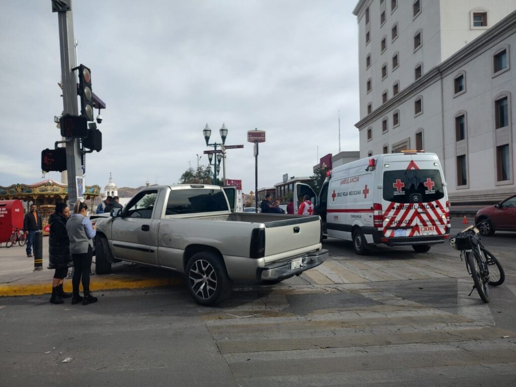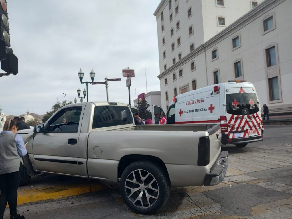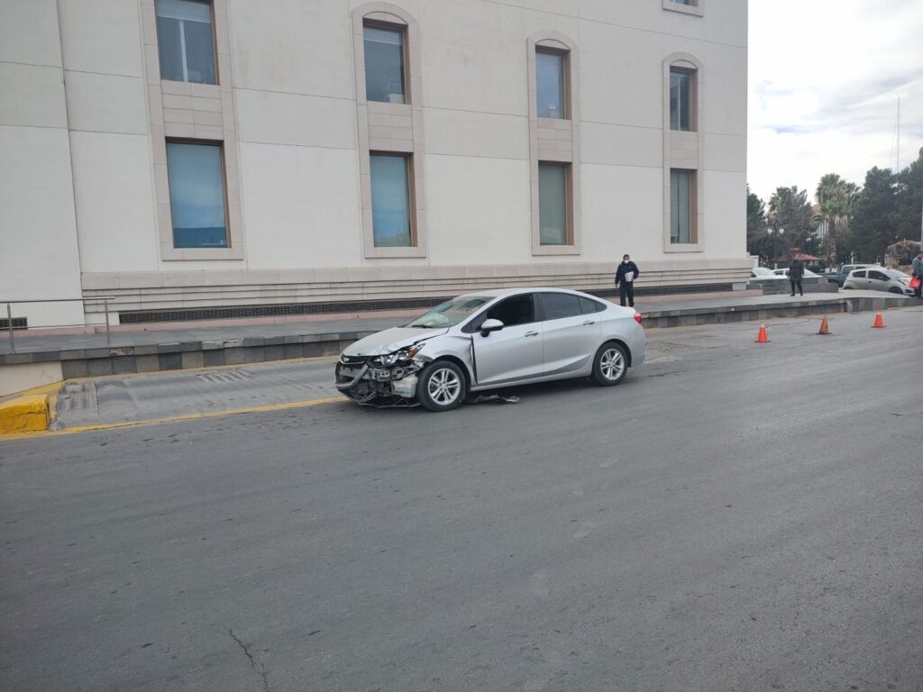 Un aparatoso choque se presentó frente a Palacio de Gobierno en el Centro de la ciudad donde una persona del sexo masculino terminó lesionado al momento fue impactado por un Chevrolet Cruz plata el cuál presuntamente dio a una vuelta ilegal a la izquierda.