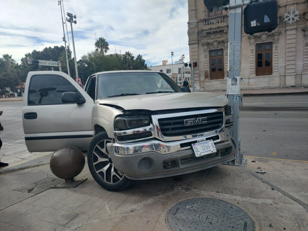 De acuerdo a datos preliminares el conductor de la GMC viajaba por la calle Aldama y al momento de cruzar el semáforo, el conductor del vehículo plata que viaja por la Carranza, dio una vuelta ilegal lo que provocó el fuerte impacto.