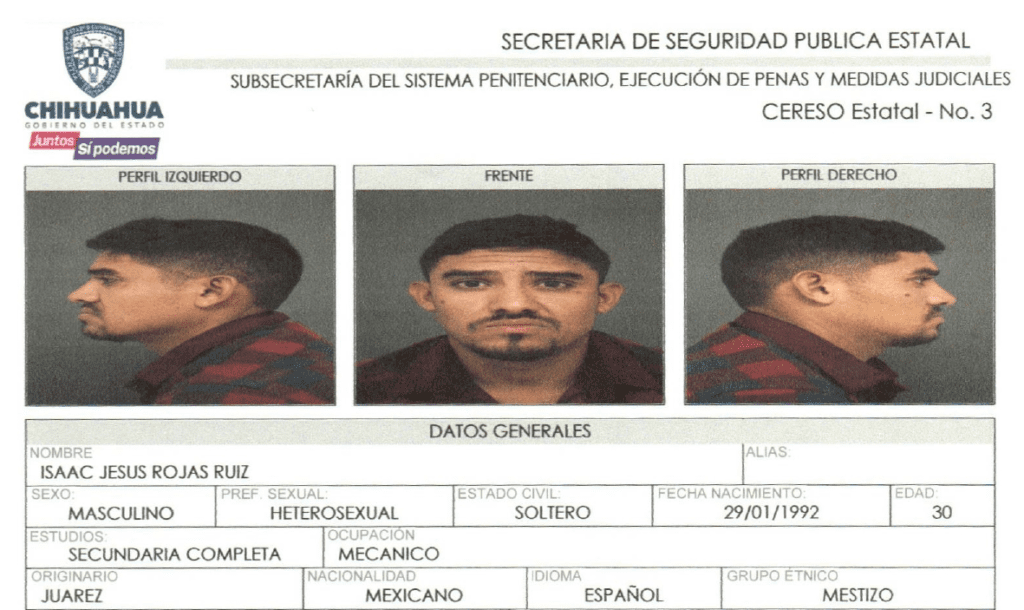 El sujeto fue identificado como Issac Jesús Rojas Ruíz de 30 años de edad quién fue detenido en su momento por portación de arma de fuego.
