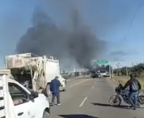 En el vídeo se puede observar cómo colocaron dos automóviles y posteriormente los incendiaron para poder tapar el acceso en la única entrada al aeropuerto.
