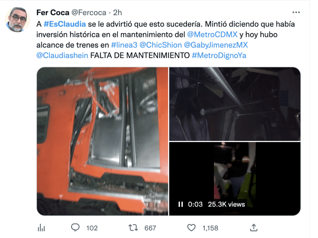 (GALERÍA) Responsabilizan en redes a Sheinbaum por choque de metro