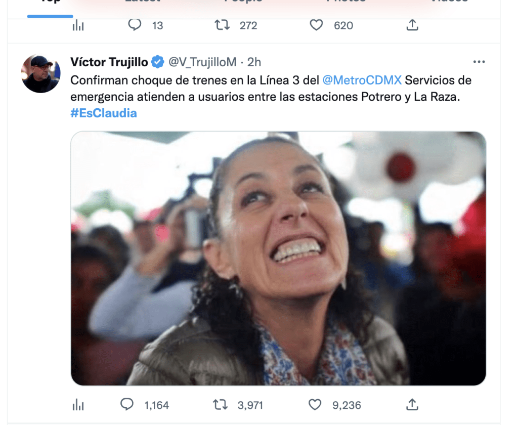 En la red social social Twitter comenzó a hacerse viral la frase #EsClaudia después del trágico accidente que ocurrió en la Ciudad de México donde un convoy del Metro de la capital del país chocó con otro tren.