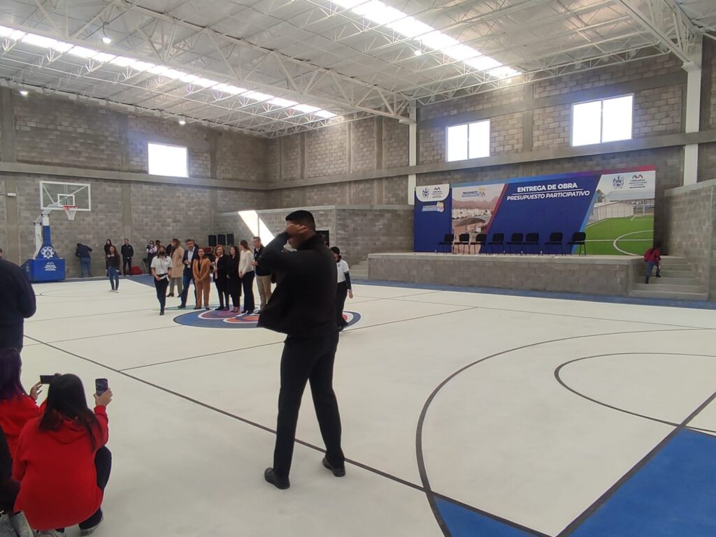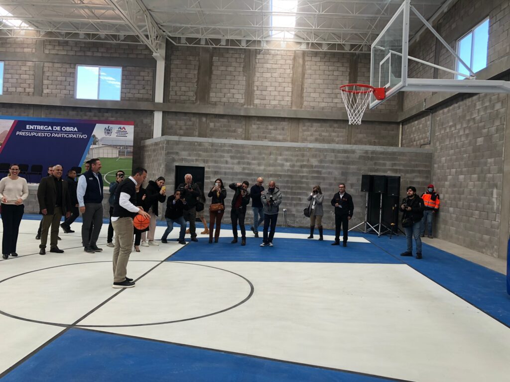 Chihuahua, Chih.-En evento encabezado por el Alcalde, Marco Bonilla, fue inaugurado el Gimnasio de la Secundaria Técnica #40 ubicada en la Colonia Palestina, obra que forma parte del Presupuesto Participativo y que beneficiará a los más de 900 integrantes del plantel.