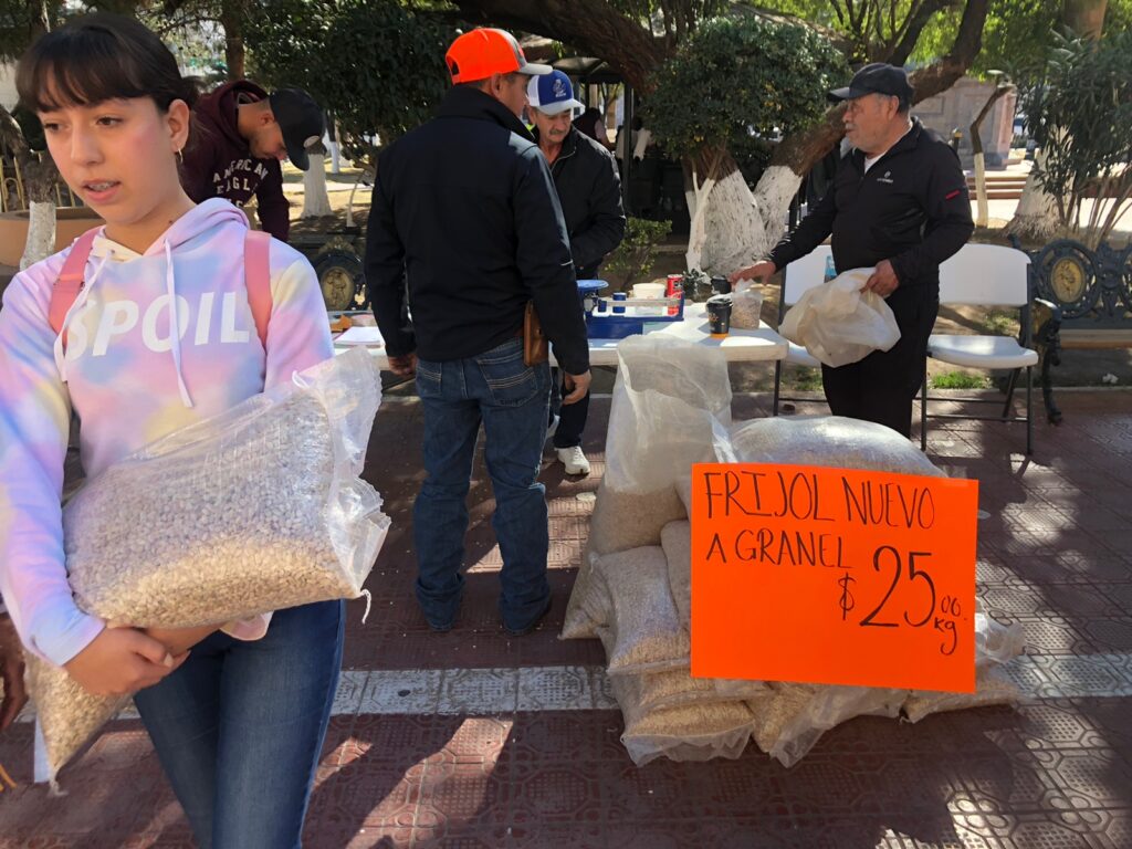 Productores de frijol de Cusihuiriachi comenzaron a vender frijol aproximadamente 10 pesos menos por kilo que un supermercado, esto enfrente de Palacio de Gobierno en la denominada Plaza Hidalgo.