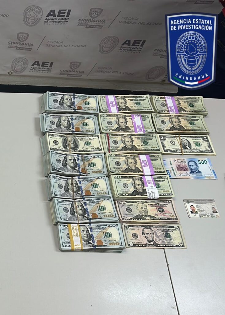 Elementos de la Agencia Estatal de Investigación, con el apoyo de la Secretaría de Seguridad Pública del Estado, catearon un domicilio en Ciudad Juárez, donde detuvieron a una persona que se identificó como David C. C., y aseguraron armas de fuego y una considerable cantidad de dólares.