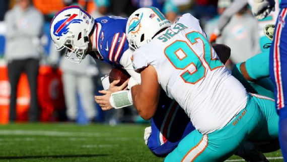 Análisis del quarterback: Mientras que las tres entregas de balón de Allen son una gran preocupación, realizó grandes lanzamientos en momentos clave. La presión de los Dolphins fue efectiva, capturando a Allen en siete ocasiones, empatando su peor marca personal.