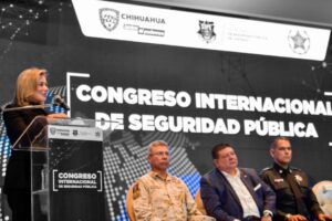 La gobernadora Maru Campos encabezó la ceremonia de inauguración del Primer Congreso Internacional de Seguridad Pública en el estado de Chihuahua, dirigido a los policías estatales y municipales,