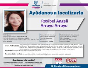 Una joven de nacionalidad venezolana, identificada como Roxibel Angeli Arroyo Arroyo, fue reportada cómo desaparecida en esta capital. La joven de 22 años, se ausentó desde el pasado