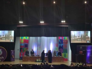 En las instalaciones de la Rectoría de la Universidad Autónoma de Chihuahua, el rector Luis Alfonso Rivera Campos y la gobernadora del estado, María Eugenia Campos Galván, entregaron