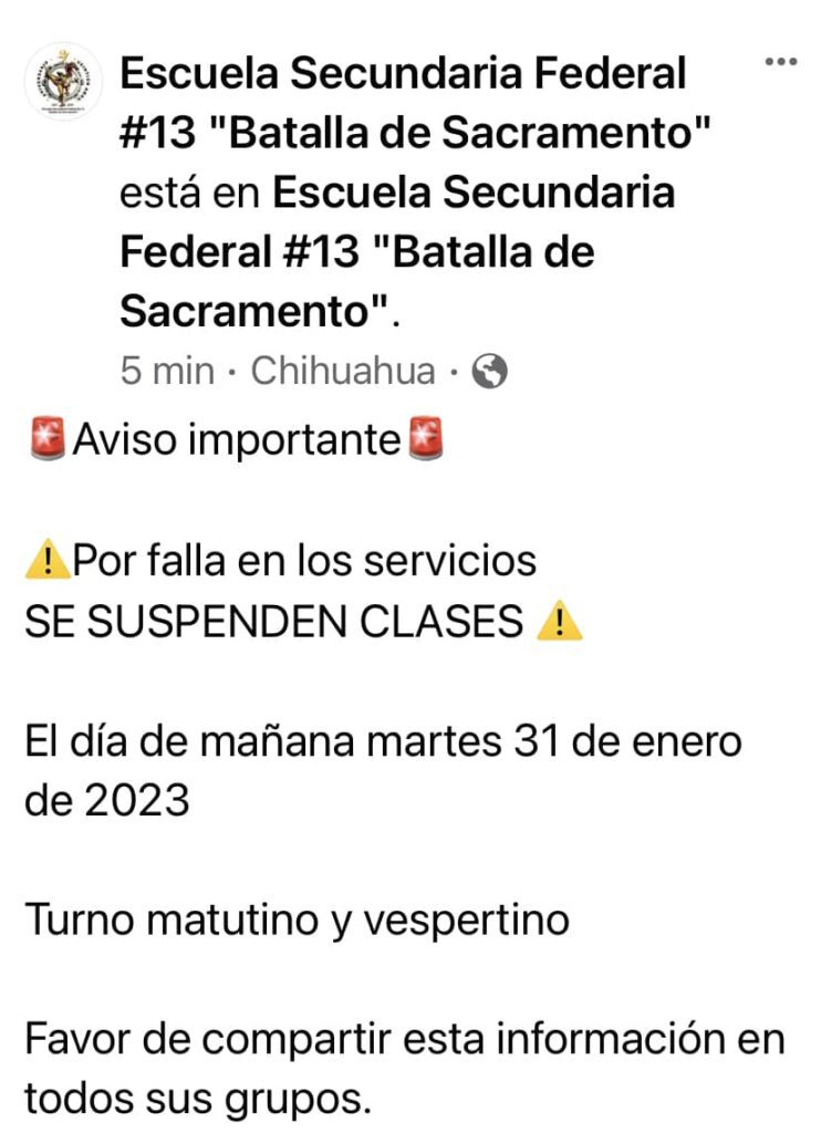 A través de redes sociales comenzó a circular una alerta por una amenaza de bomba en la Secundaria Federal 13 razón por la que se suspendieron clases este martes 31 de enero, sin embargo, autoridades educativas indicaron que la situación ya fue controlada.