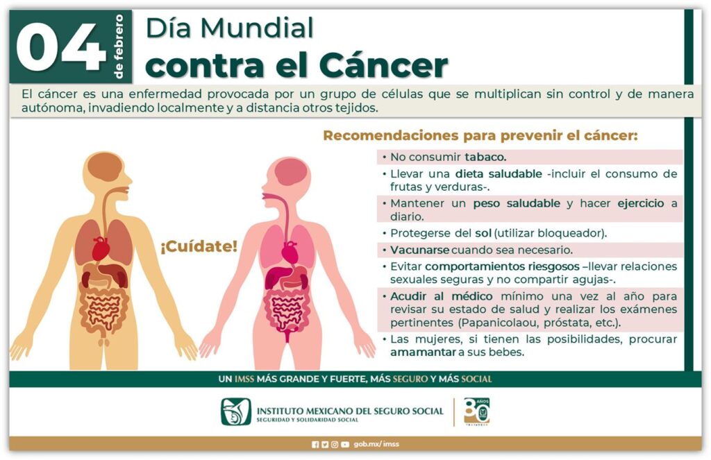 En el marco del Día Mundial contra el Cáncer, el Instituto Mexicano del Seguro Social (IMSS) en Chihuahua advierte que actualmente se conocen más de 200 tipos de este padecimiento, siendo los más comunes los de piel, pulmón, mama y colorrectal.