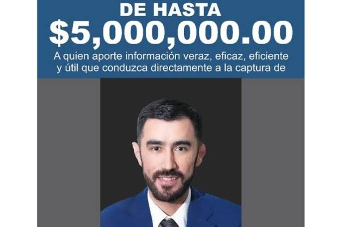 Además la Fiscalía General del Estado sigue ofreciendo la cantidad de 5 millones de pesos a la persona que proporcione información sobre el paradero de dicho sujeto.