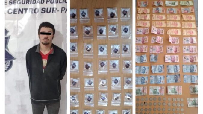 Parral, Chihuahua- Elementos de la Secretaría de Seguridad Pública del Estado (SSPE), adscritos a Zona Centro-Sur, detuvieron a un presunto narcomenudista en posesión de envoltorios de «cristal» y dinero en efectivo producto de la venta de la droga, y quién además fue señalado como el agresor de una mujer.Elementos estatales realizaban recorridos de vigilancia en el fraccionamiento Mohinora cuando fueron abordados por una mujer solicitando ayuda ya que su pareja sentimental la había golpeado.