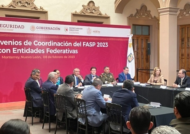 Junto a nueve entidades, Chihuahua signó el anteproyecto que establece algunas reglas de los Convenios de Coordinación del Fondo de Aportaciones para la Seguridad Pública FASP 2023 con Entidades Federativas, evento encabezado por Augusto López, secretario de Gobernación federal, en el estado de Nuevo León.