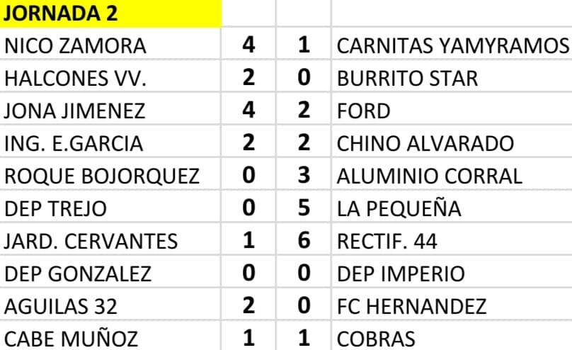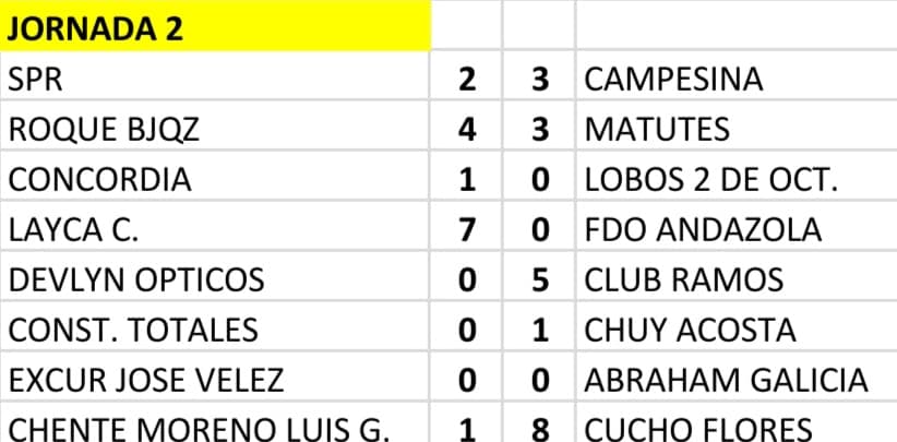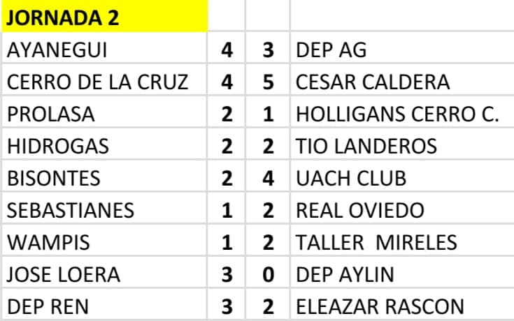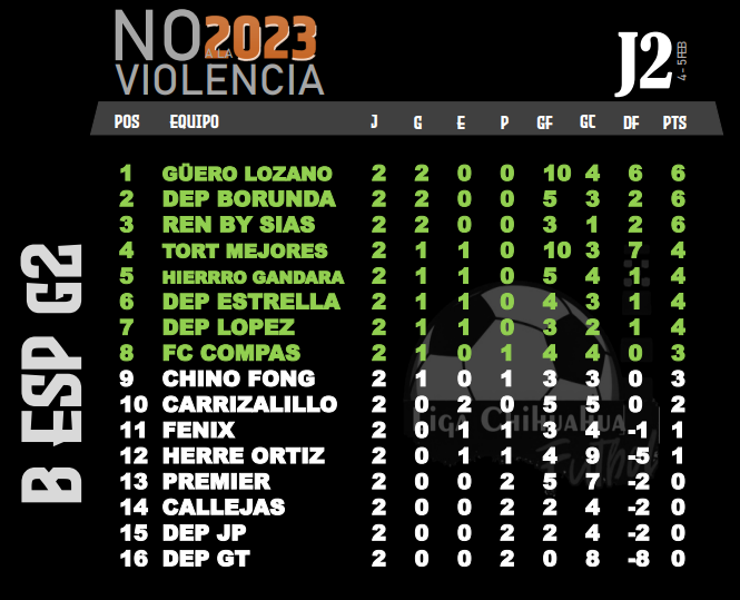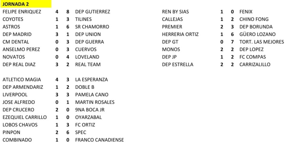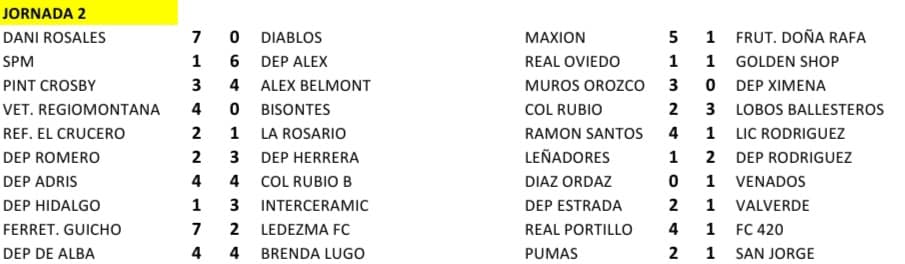 RESULTADOS CATEGORÍA B G1 Y G2 JORNADA 2