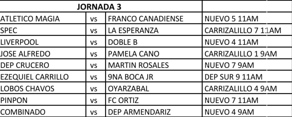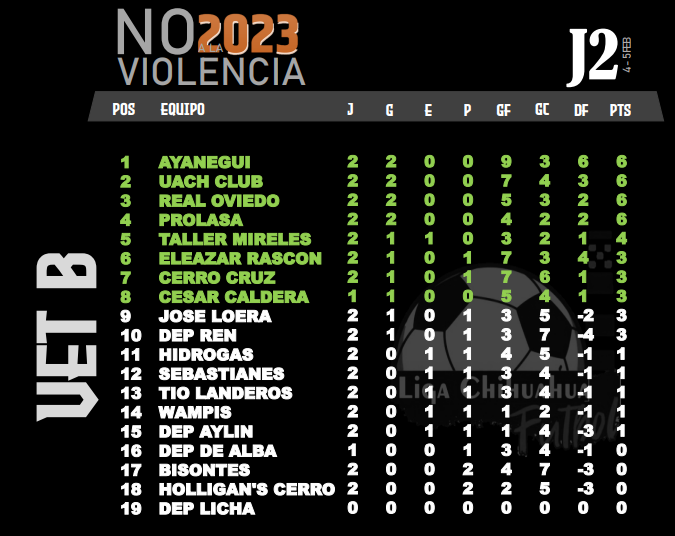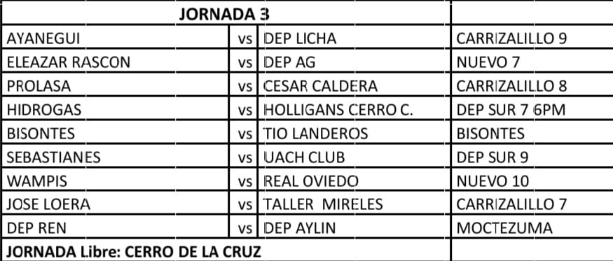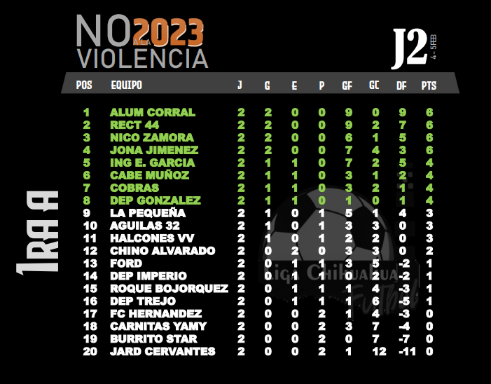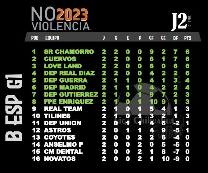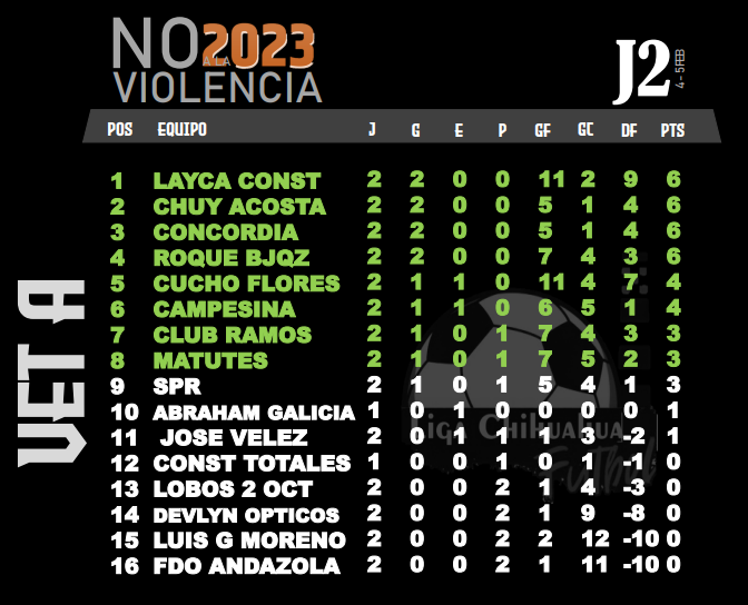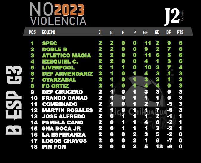 Chihuahua, Chih.- Continúa la actividad del Torneo Apertura 2023 “No a la violencia” de la Liga Chihuahua de Futbol en sus diferentes categorías, por lo que te dejamos el rol para la jornada 3, así como los resultados de la jornada 2 y las tablas de posiciones: