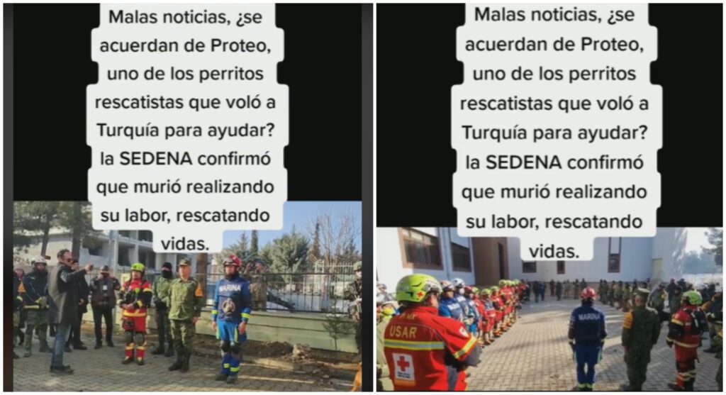 Por medio de las redes sociales oficiales de la Secretaría de Defensa Nacional difundieron el video del momento en que despiden a Proteo el perro rescatistas que fue a apoyar a las personas que sufrieron por el sismo que ocurrió en Turquía en donde ya contabilizaron más de 33 mil muertos.