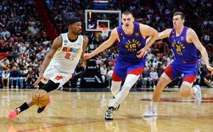 Nikola Jokic, el dos veces Jugador Más Valioso de la NBA, terminó con 27 puntos, 12 rebotes y ocho asistencias. En Miami, el astro serbio Nikola Jokic se perdió por muy