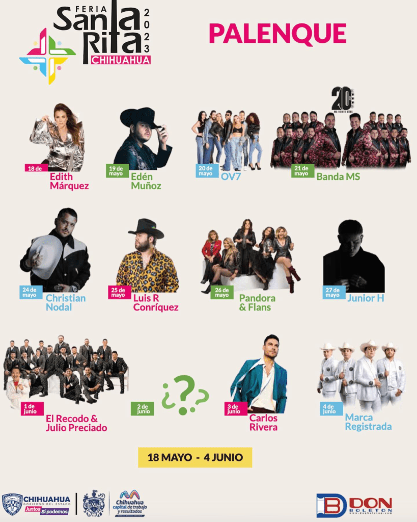 Es importante mencionar que los rangos de precios para el palenque rondarán entre los $400.00 pesos y hasta los $3500.00 pesos dependiendo del artista y que los boletos estarán a la venta a partir del día viernes 24 de febrero en punto de las 10 de la mañana a cargo de Don Boleton.