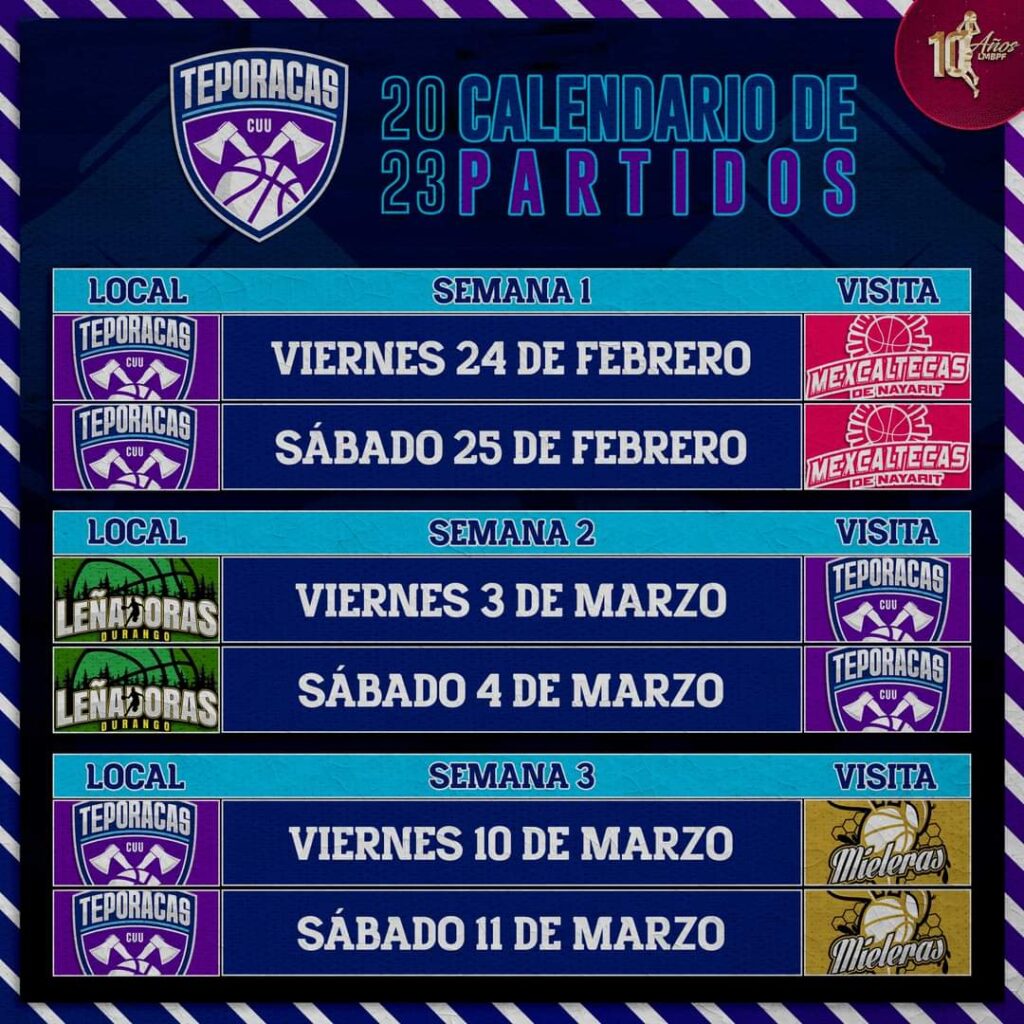 Las Teporacas debutan este viernes 24 y 25 de febrero al recibir a las Mexcaltecas de Nayarit en el Gimnasio Rodrigo M. Quevedo en la búsqueda de convertirse en campeonas nacionales despues de quedarse en semifinales la campaña pasada.