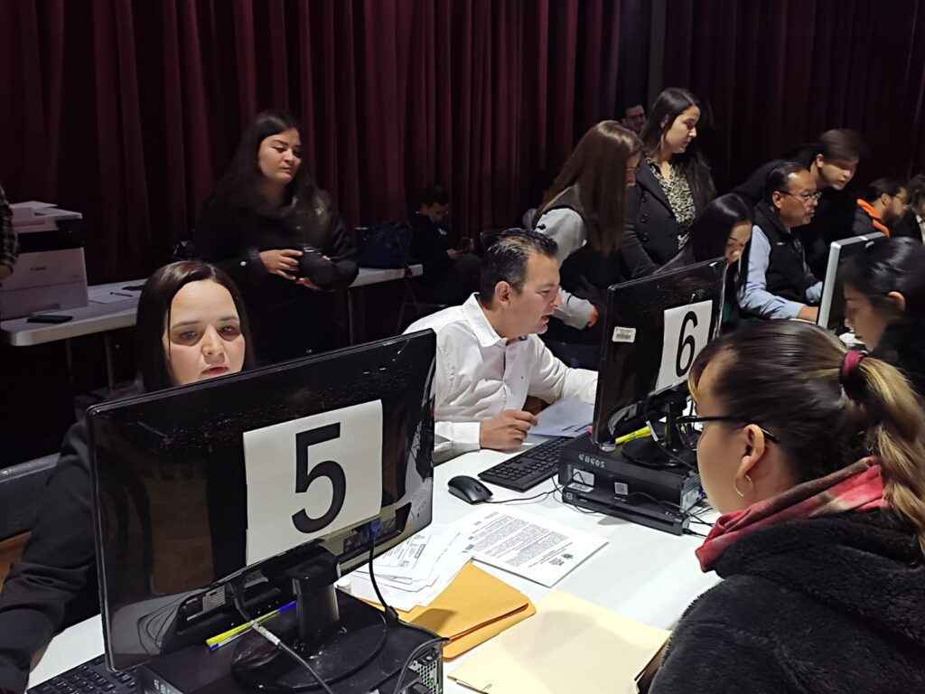 Chihuahua, Chih.- En el penúltimo día de recepción de documentos para las becas municipales de excelencia académica, el Alcalde, Marco Bonilla asistió al Auditorio Municipal Luis H. Álvarez para formar parte y supervisar el proceso.