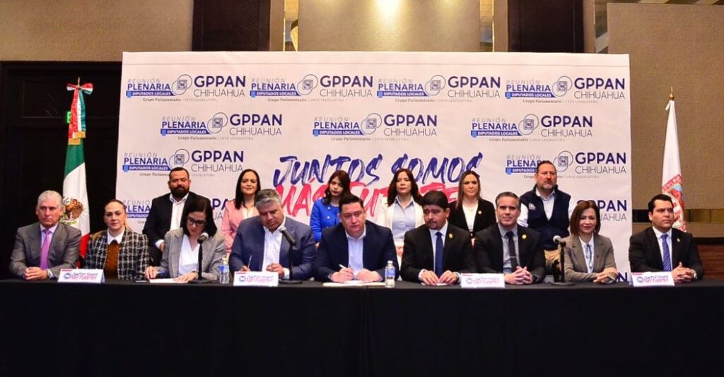 El líder panista fue acompañado en conferencia de prensa por la bancada local de Acción Nacional, mismo que rindieron cuenta de los trabajos que están desarrollando en la comunidad chihuahuense, en una geografía política que tiene una cobertura en el norte, centro, sur y parte serrana del Estado.