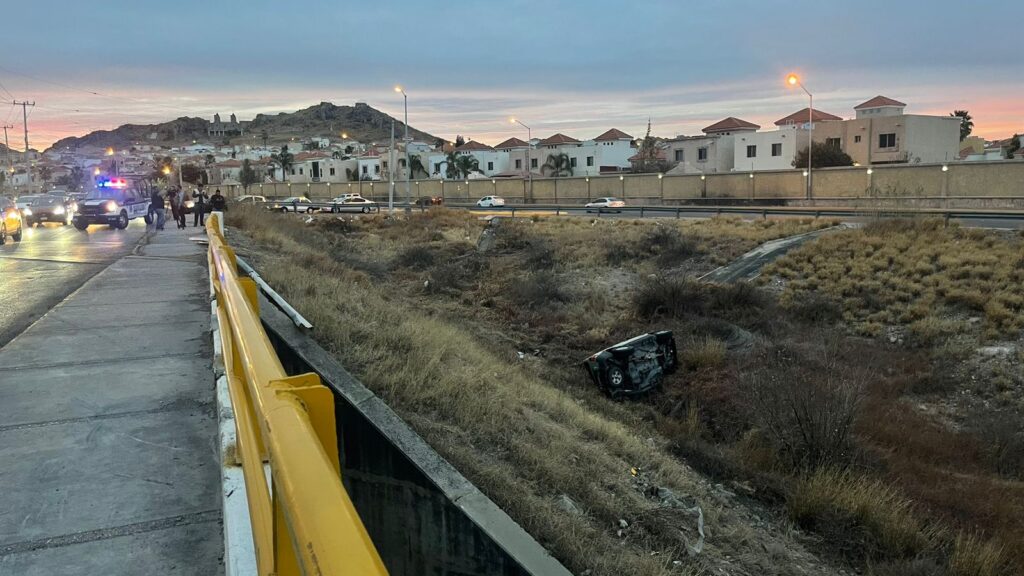 Tremendo accidente sufrieron una pareja de jóvenes al caer con todo y camioneta a un canal, rumbo a la Presa El Rejón.
