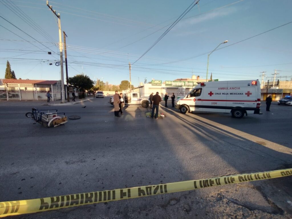 La vĂctima viajaba a bordo de una bicicleta con un pequeño remolque en la parte posterior, vehĂculo que quedĂł en el piso tras el accidente.