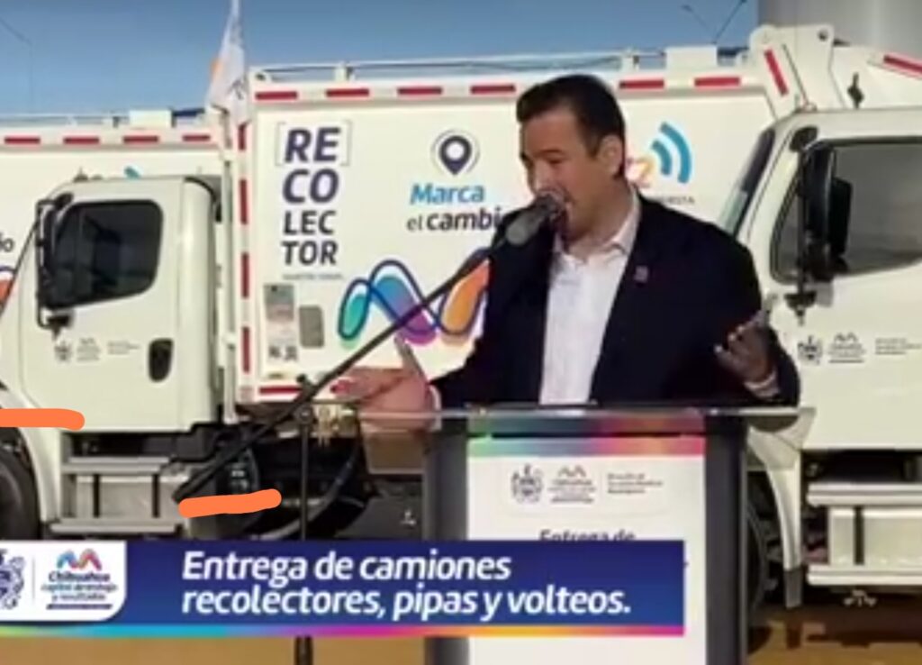 Chihuahua, Chih.- El Alcalde, Marco Bonilla encabezó la entrega de 6 nuevos camiones de basura, asi como varios vehículos más para la Dirección de Servicios Públicos.