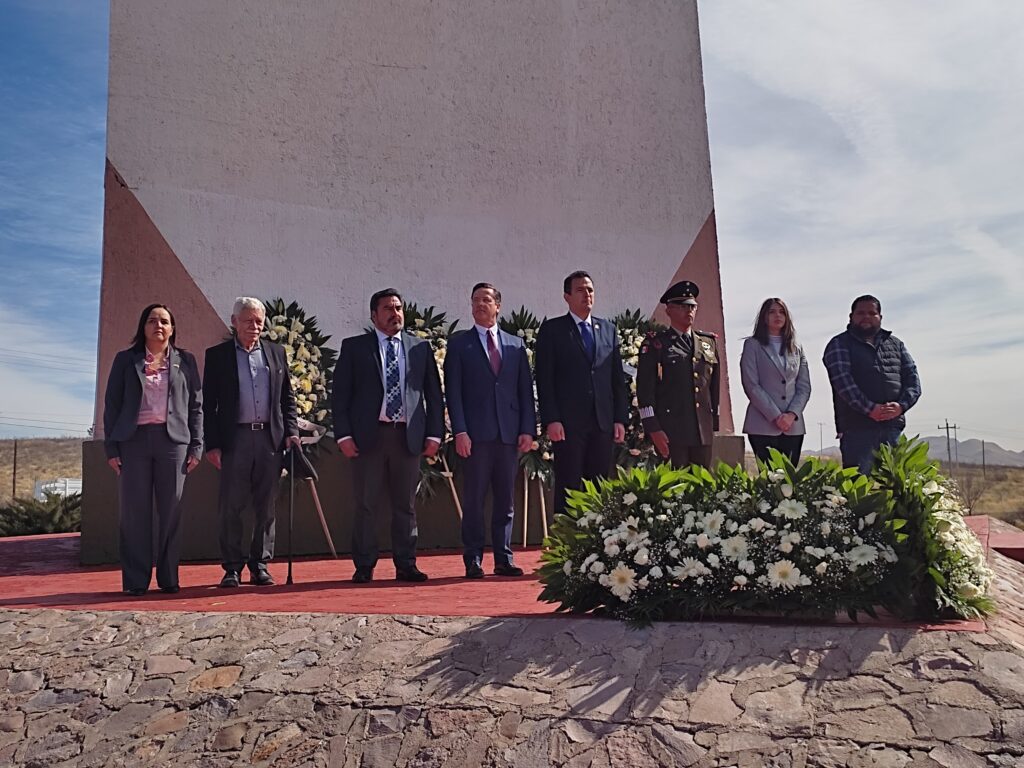Chihuahua, Chih.- El Alcalde, Marco Bonilla y diferentes autoridades conmemoraron con una guardia de honor en el obelisco, la Batalla de Sacramento, en la cual hace 176 años más de 200 jóvenes defendieron su patria ante el ejercito de los Estados Unidos.