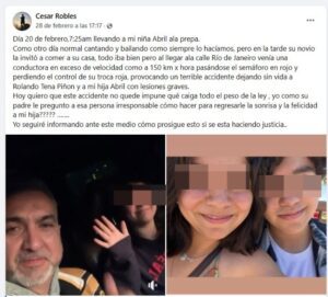 El padre de Abril, la jovencita que sostenía un noviazgo con Rolando, el joven fallecido tras el accidente sobre la Río de Janeiro, demandó se haga justicia en