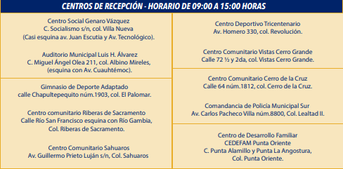 Mientras que de manera presencial se deberá presentar los documentos completos solicitados, en original y copia legible en los diferentes centros de recepción que estarán disponibles, en un horario de 09:00 a 15:00 horas.