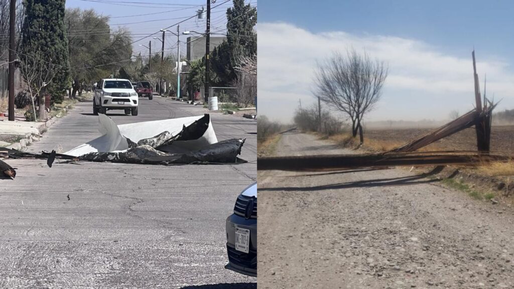 Rosales.- Derivado a las fuertes ráfagas de viento registradas durante el día de hoy 2 de marzo, se han atendido reportes por parte de la Coordinación de Protección Civil de Rosales, en donde ciudadanos de este Municipio reportan al servicio de emergencias caídas de árboles, lonas, láminas, incluyendo la caída de postes de alta tensión en la localidad de San Valentín pertenecientes a la CFE y otra propiedad de la empresa de telefonía TELMEX.