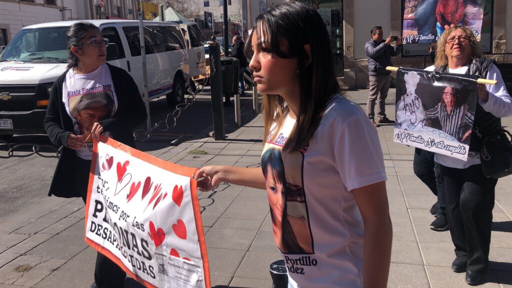 Afuera de las instalaciones del Palacio de Gobierno acudieron un grupo de familiares de desaparecidos en el estado para exigir justicia e información sobre el caso de sus seres queridos.