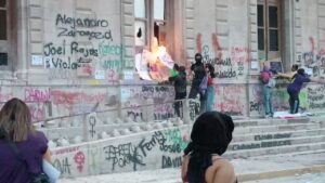 Personal de la Fiscalía General del Estado confirmó la detención de una persona del sexo masculino por causar daños al Palacio de Gobierno durante la marcha del 8M