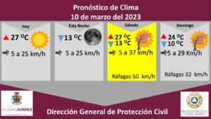 -Estaremos con mañanas y noches frías La Dirección General de Protección Civil pronostica un viernes soleado, pues de acuerdo con informes del Servicio Meteorológico Nacional, la temperatura máxima