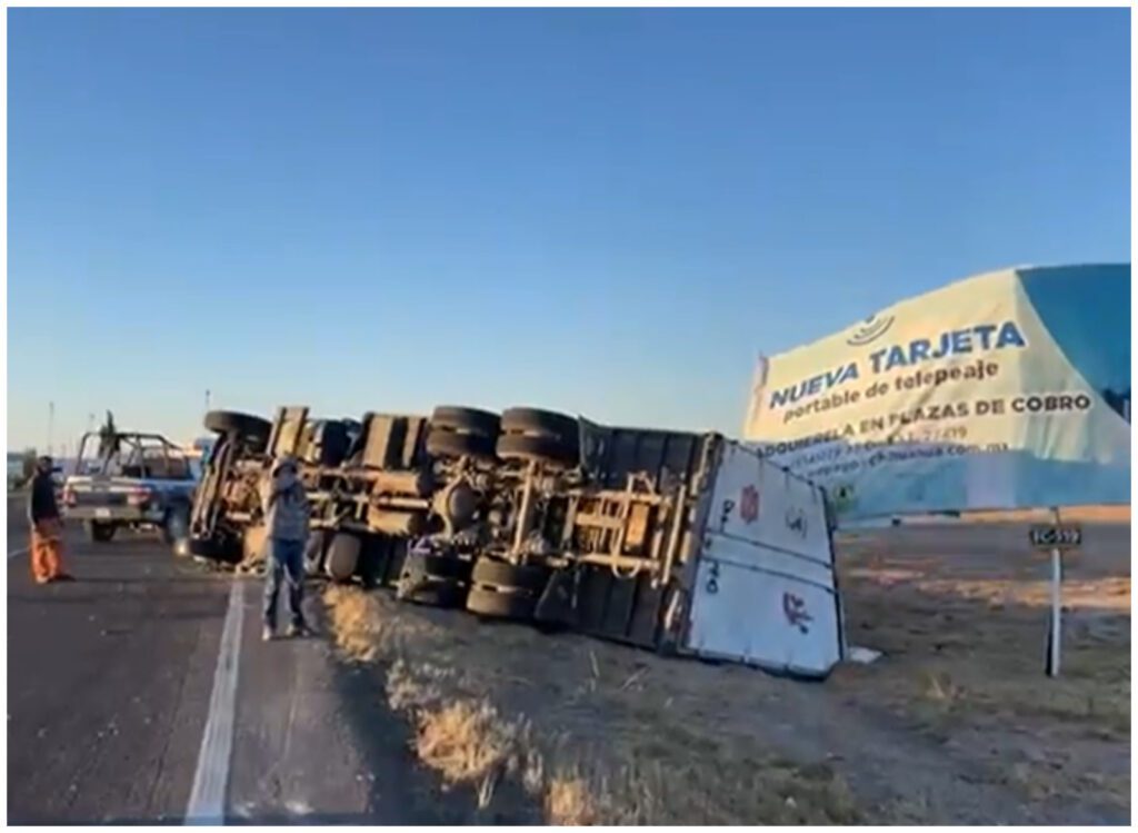 Autoridades de las diferentes instituciones gubernamentales atendieron el llamado de una volcadura de un tráiler que ocurrió en la carretera de Jiménez a Camargo, por lo que hasta el momento no hay heridos de gravedad.