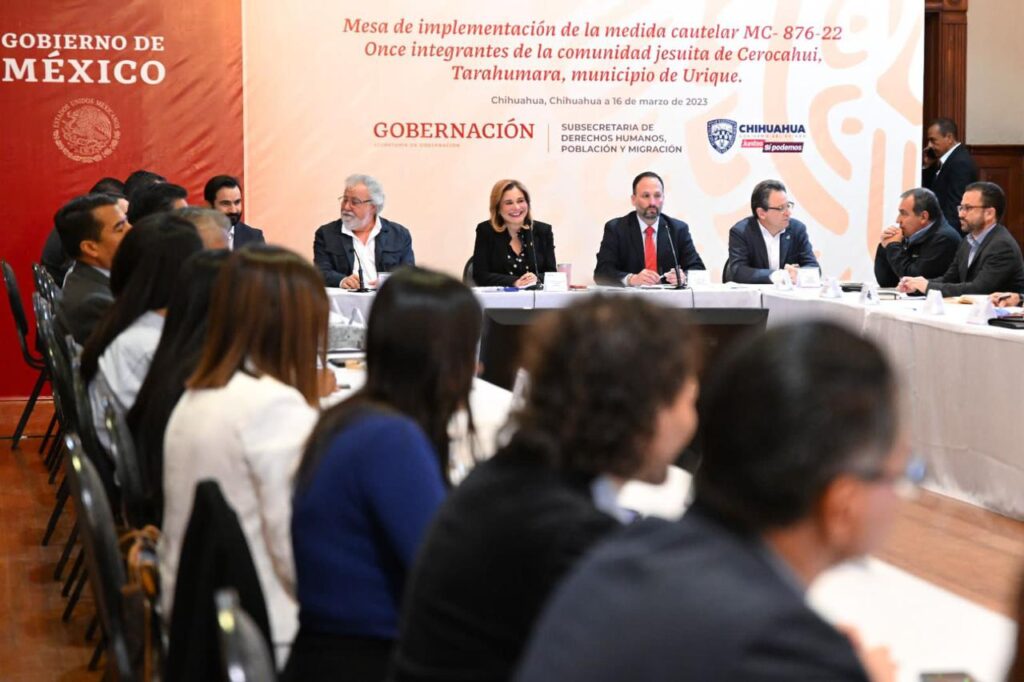 La gobernadora Maru Campos atendió la instalación de la Mesa de Implementación de la Medida Cautelar MC-876-22 Once integrantes de la Comunidad Jesuita de Cerocahui, Tarahumara, Municipio de Urique, la cual fue dispuesta por la Comisión Interamericana de Derechos Humanos (CIDH) y que tiene como objetivo el trazar la ruta de acciones a seguir en favor de las once personas cauteladas de la comunidad jesuita de Cerocahui.