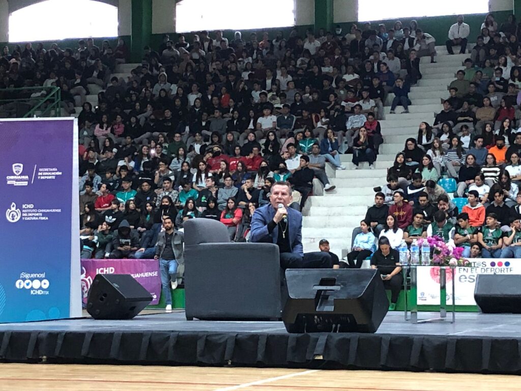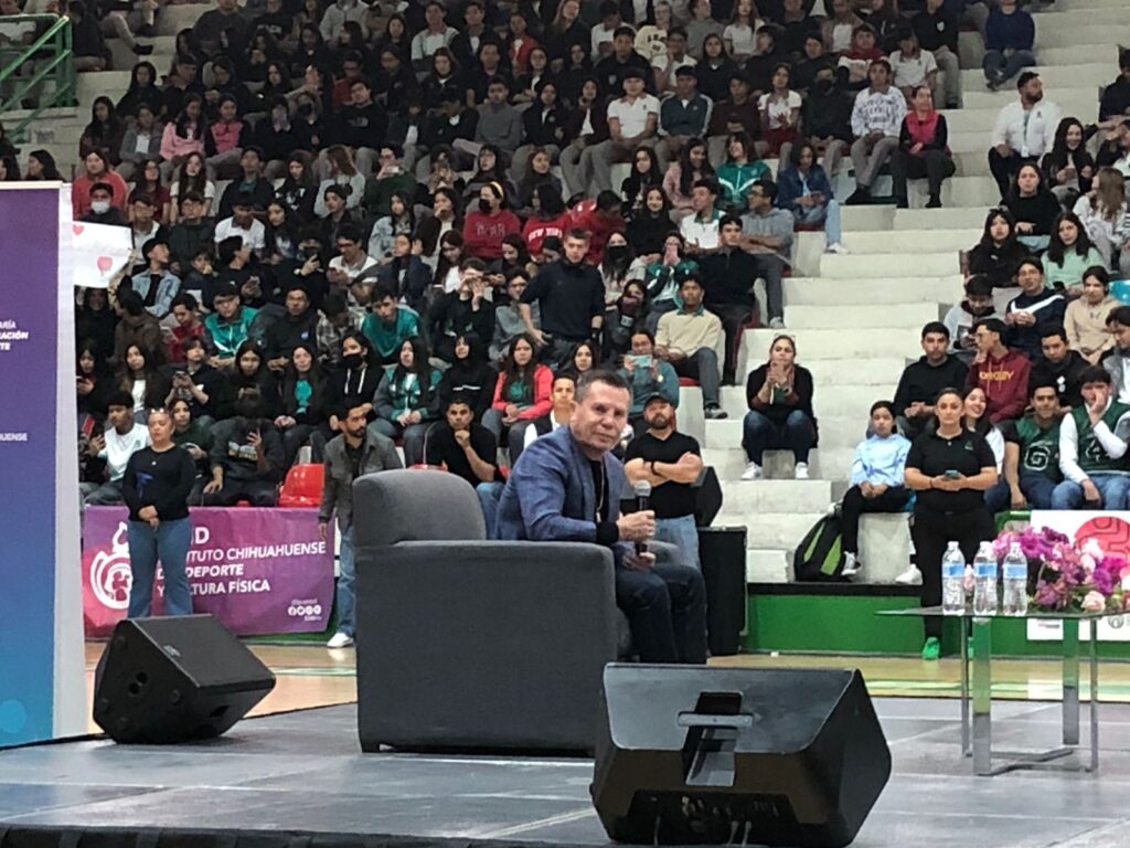 El campeón y destacable boxeador a nivel internacional, Julio César Chávez, arribó al gimnasio del Colegio de Bachilleres para brindar su conferencia titulada “El sueño de un Campeón”.