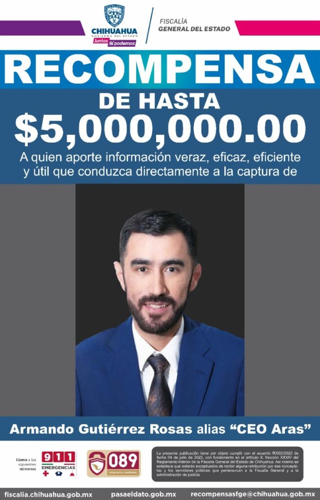 El CEO DE Aras Business Group, Armando Gutiérrez, fue localizado en la ciudad de El Paso, Texas en los Estados Unidos y por el momento se lleva a cabo el procedimiento correspondiente para su futura detención.