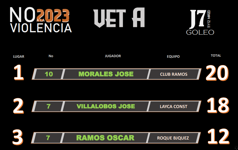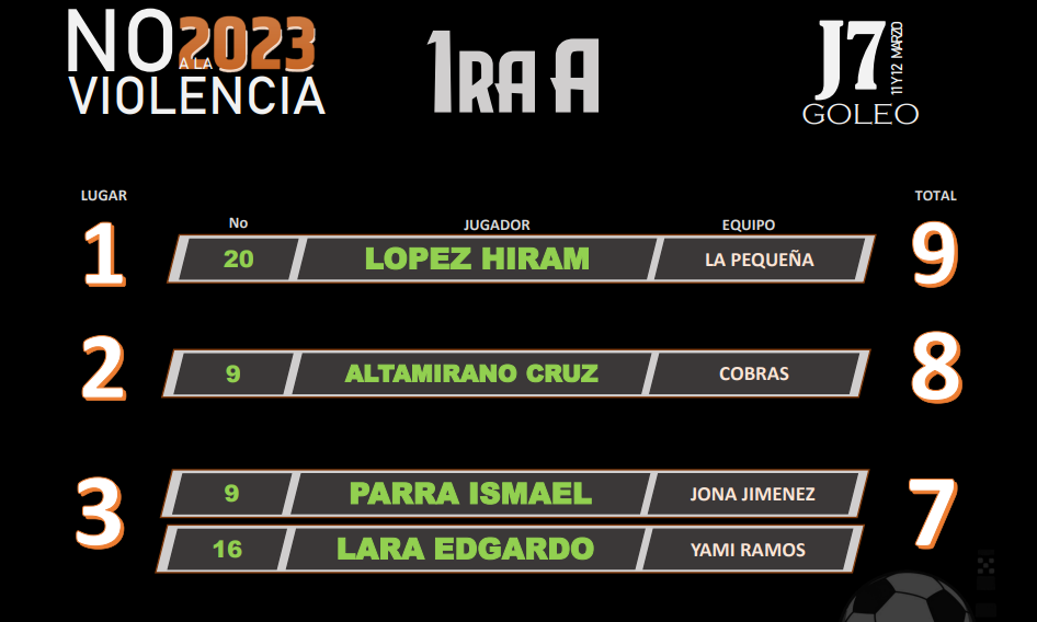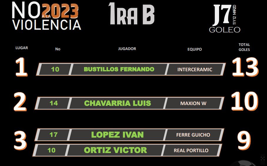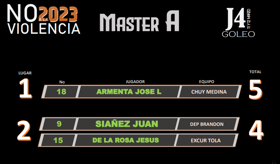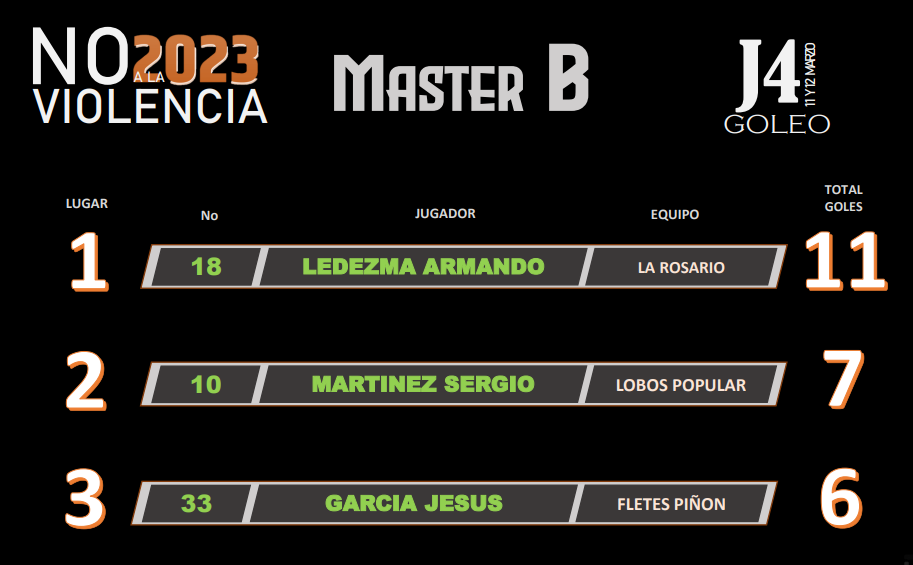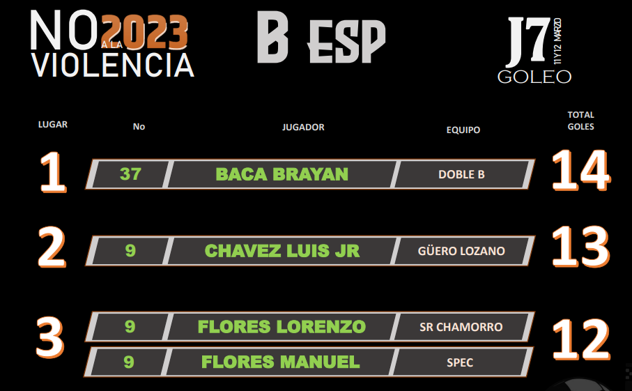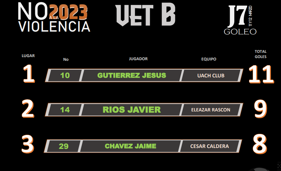 Chihuahua, Chih.- Después de 7 jornadas en el Torneo Apertura 2023 “No a la violencia” de la Liga Chihuahua de Futbol, con una gran actuación de los delanteros, así marcha la tabla de goleadores de las diferentes categorías, así como después de la Jornada 4 de la master A y B.