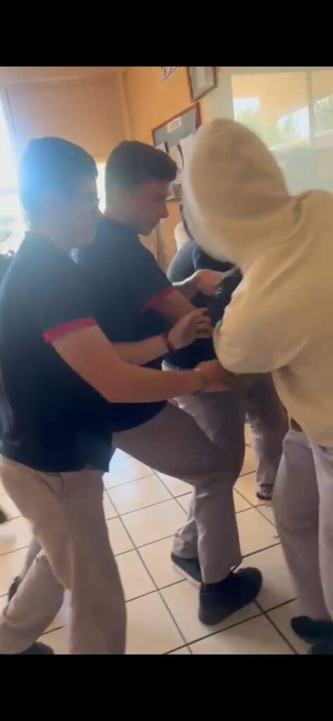 El menor como refugio corrió hacia el salón de clases donde agarró unas tijeras y amenazó a su atacante, sin embargo, este se rió y continuó con los ataques físicos.
